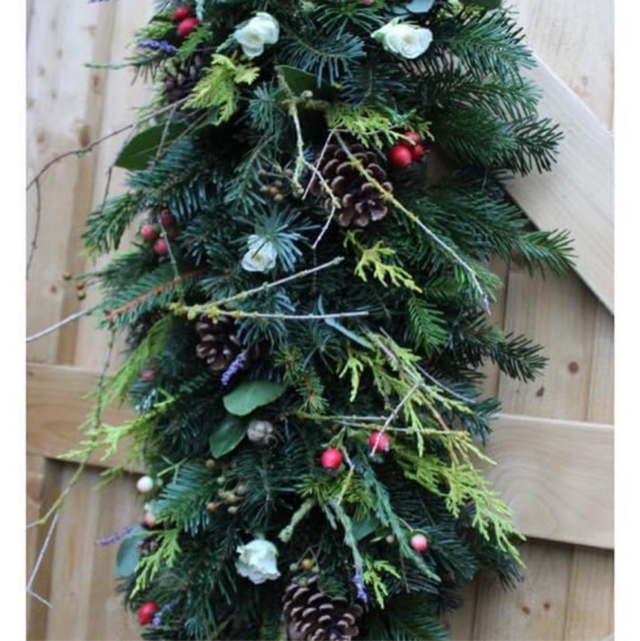 Fancy something different on your door then opt for a swag. This one is adorned with berries, fresh red roses and more…